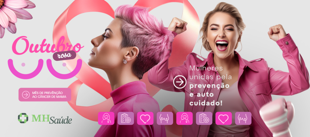 Ei, já parou para pensar no quanto é importante cuidar de você? Durante o mês de outubro, nós da MH Saúde intensificamos nossas ações para falar sobre algo que não podemos deixar de lado: a saúde da mulher. É o momento de lembrar que cuidar da gente não é luxo, é necessidade! Por isso, nossa campanha do Outubro Rosa está focada no autocuidado e na realização de exames regulares. Vamos juntas falar sobre a prevenção do câncer de mama e do colo do útero?